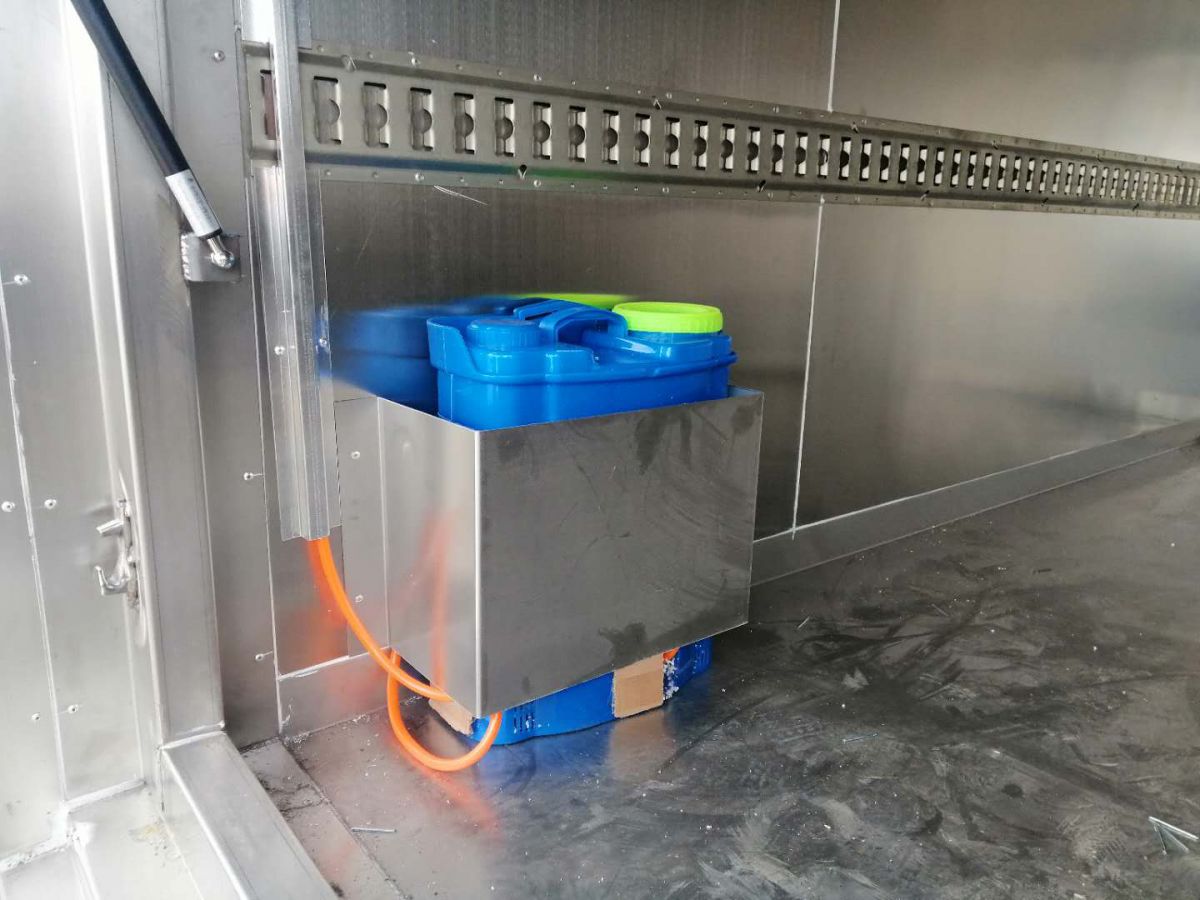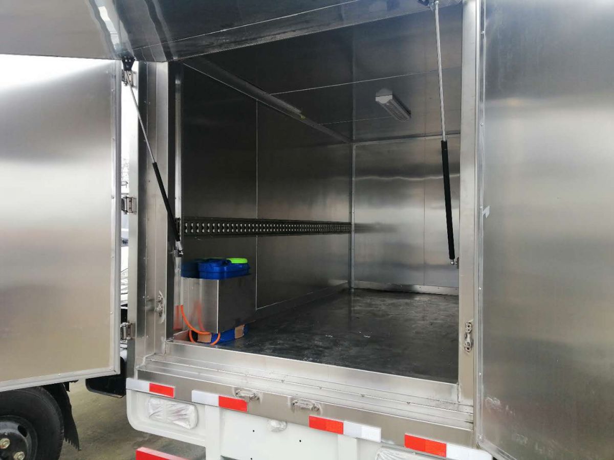 厢体部分:厢体采用双层金属骨架结构,外部采用1.2mm厚冷轧钢板、内置铝合金板材、中间夹层为保温层,厢体经现代工艺改装而成,厢体内带有制冷机组、紫外线杀菌、自动喷淋系统、门中门,其它均按厂标执行组织生产;