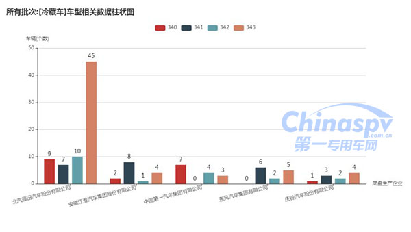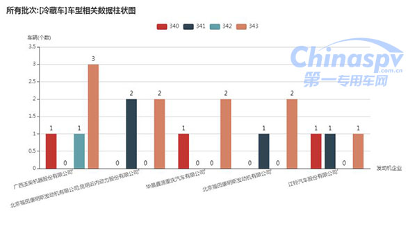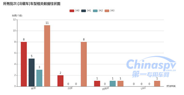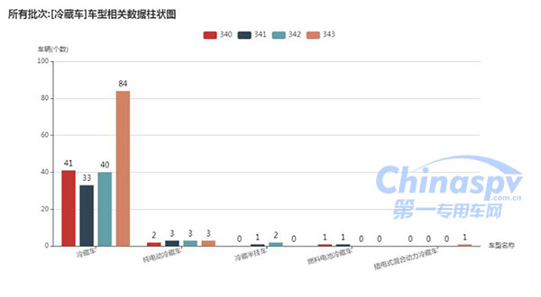 根据第340批次——第343批次《道路机动车辆生产企业及产品公告》公布数量看,共涉及5款车型,冷藏车(198辆)、纯电动冷藏车(11辆)、冷藏半挂车(3辆)、燃料电池冷藏车(2辆)、插电式混合动力冷藏车(1辆)。