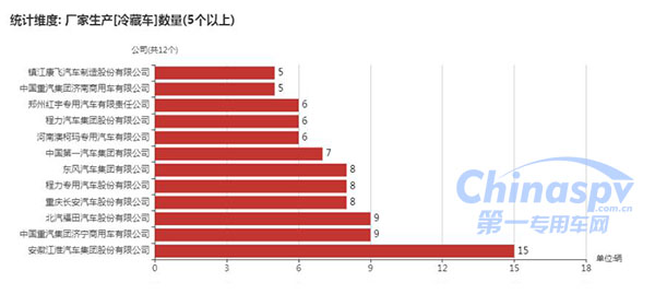 根据第340批次——第343批次《道路机动车辆生产企业及产品公告》公布数量看,配套冷藏车数量最多的发动机五个企业分别是:广西玉柴机器股份有限公司、北京福田康明斯发动机有限公司;昆明云内动力股份有限公司、华晨鑫源重庆汽车有限公司、北京福田康明斯发动机有限公司、江铃汽车股份有限公司。