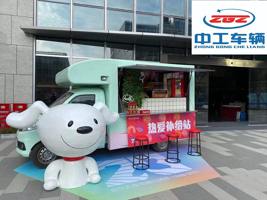 京东五星商城选择了蓝狮在线车辆有限公司打造了暖心补给站、在这个小小的移动服务车中可以带来铁板烧、奶茶、麻辣烫、关东煮。一切只可在小吃街中吃的东西、种类齐全。